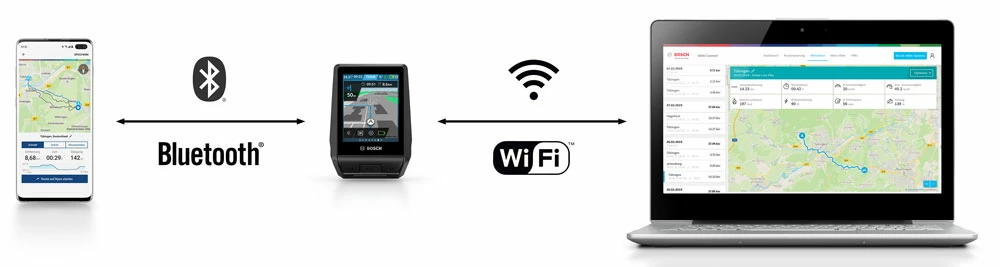 les eBikers ont toutes les informations pertinentes en vue sur leur tablette ou leur PC dans le portail en ligne eBike Connect. Toutes les données de conduite peuvent également y être facilement analysées après un trajet. Les données sont transférées facilement entre le portail en ligne et Nyon via le WiFi.