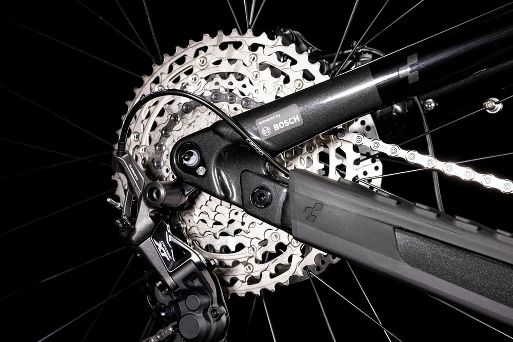 Our versatile trail-tamer needs strength and agility in equal measure. Built around the CUBE Modular Battery System, the Stereo Hybrid 140 HPC 625’s frame incorporates Bosch’s fourth-generation CX motor and a 625Wh battery in an elegant structure that protects all its crucial components from dust and moisture. With a Boost 148 rear axle, large pivot bearings and internal cable routing, you’re assured of great handling and lower maintenance, too. Our Size Split system makes it easy to find the perfect fit for any rider. And our All Mountain Geometry is carefully designed to work with both the suspension kinematics and Bosch’s drive system, so you end up with a bike that’s stable, confidence-inspiring and fun.