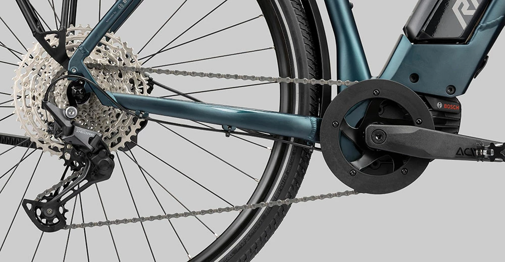 The heart of the bike is the powerful Bosch Performance CX motor with its 85 Nm of torque, which really provides more than enough power in every conceivable situation. It is powered by the beautifully shaped 500 Wh battery embedded in the down tube, which also has enough capacity for extended tours. For decent ride comfort, we are adding the model 8.0 RockShox’s top trekking fork Paragon Gold, which can be rigidly adjusted at the crown if necessary. Shimano contributes smooth gear changes and solid durability with the DEORE 11-speed gear system, including the large 11-51 tooth cassette., In addition, with the powerful MT 420/400 disk brake with four pistons at the front, strong braking power is delivered from the same company. To ensure many, pleasant hours on the bike, we mount the comfortable RADON Comfort Trail handlebar in addition to a stem that is adjustable in height and length. The comfortable ST10 saddle mounted on a spring seat post that filters away the roughest shocks from the ground comes from the same product range. Puncture-proof, easy-rolling and grippy tires are on board with the Schwalbe Energizer Plus Tour. The perfect everyday package is rounded off by the pleasant lighting, which consists of Busch and Müller’s super Lumotec IQ XS light front headlight and Herrmans H-Trace rear light. Our SOLUTION HYBRID 8.0 CX is ready to accompany you to work in wind and weather, but also in the most beautiful weather on epic tours – take the challenge!